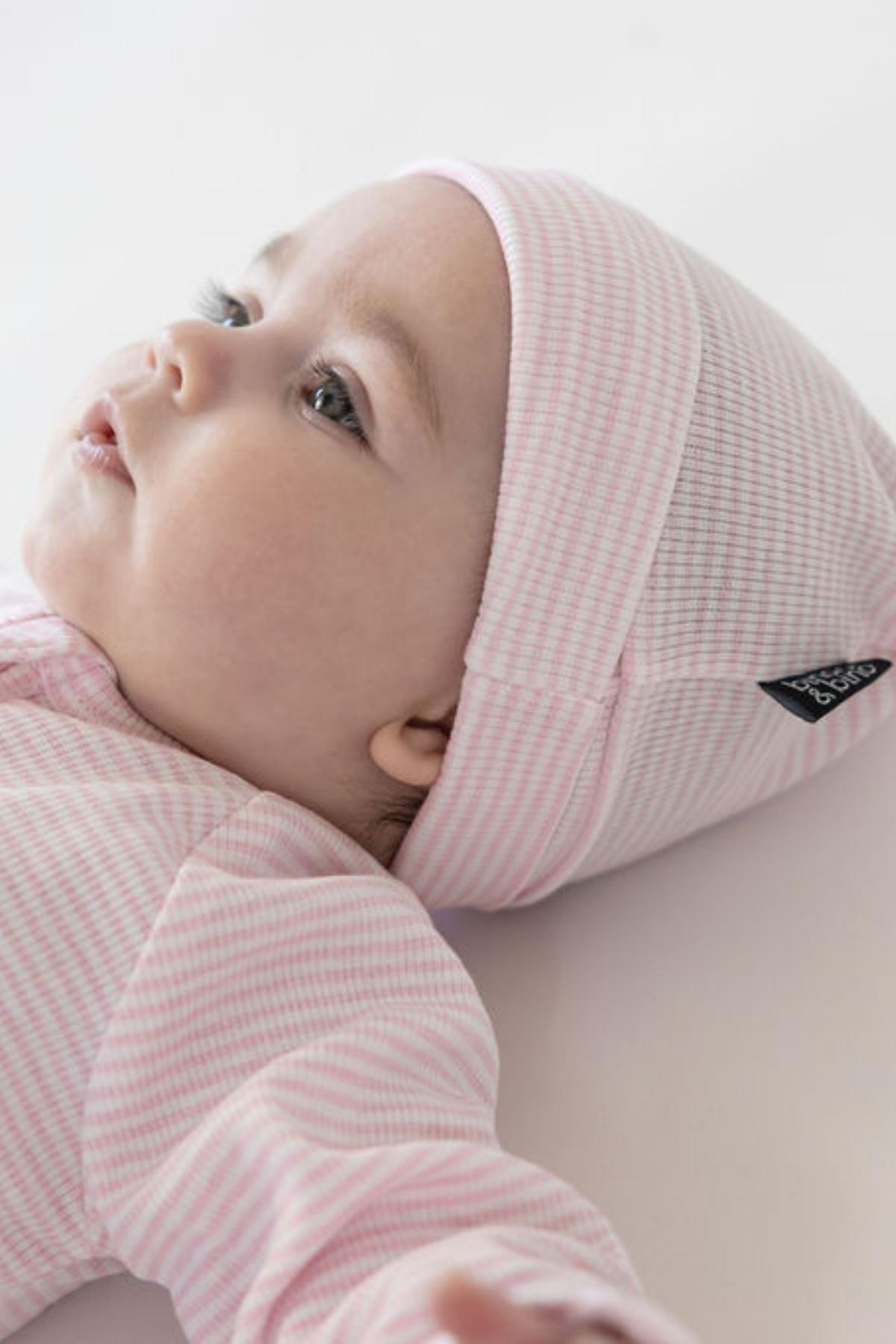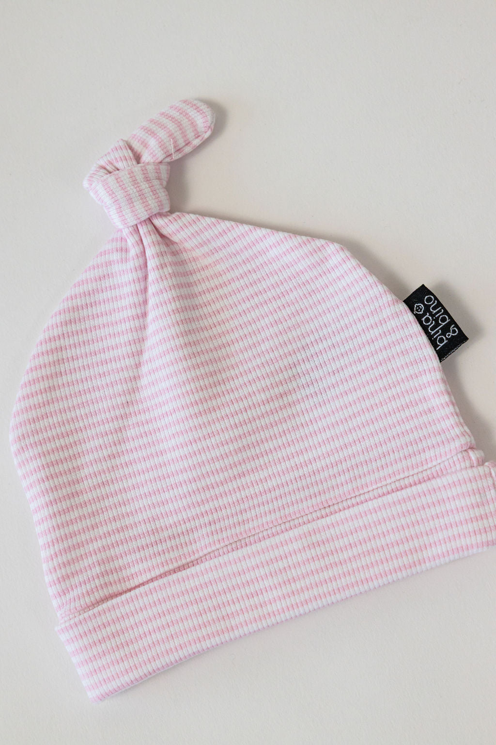 מארז 2 כובעים לתינוק מבד ריב // WHITE + PINK STRIPE