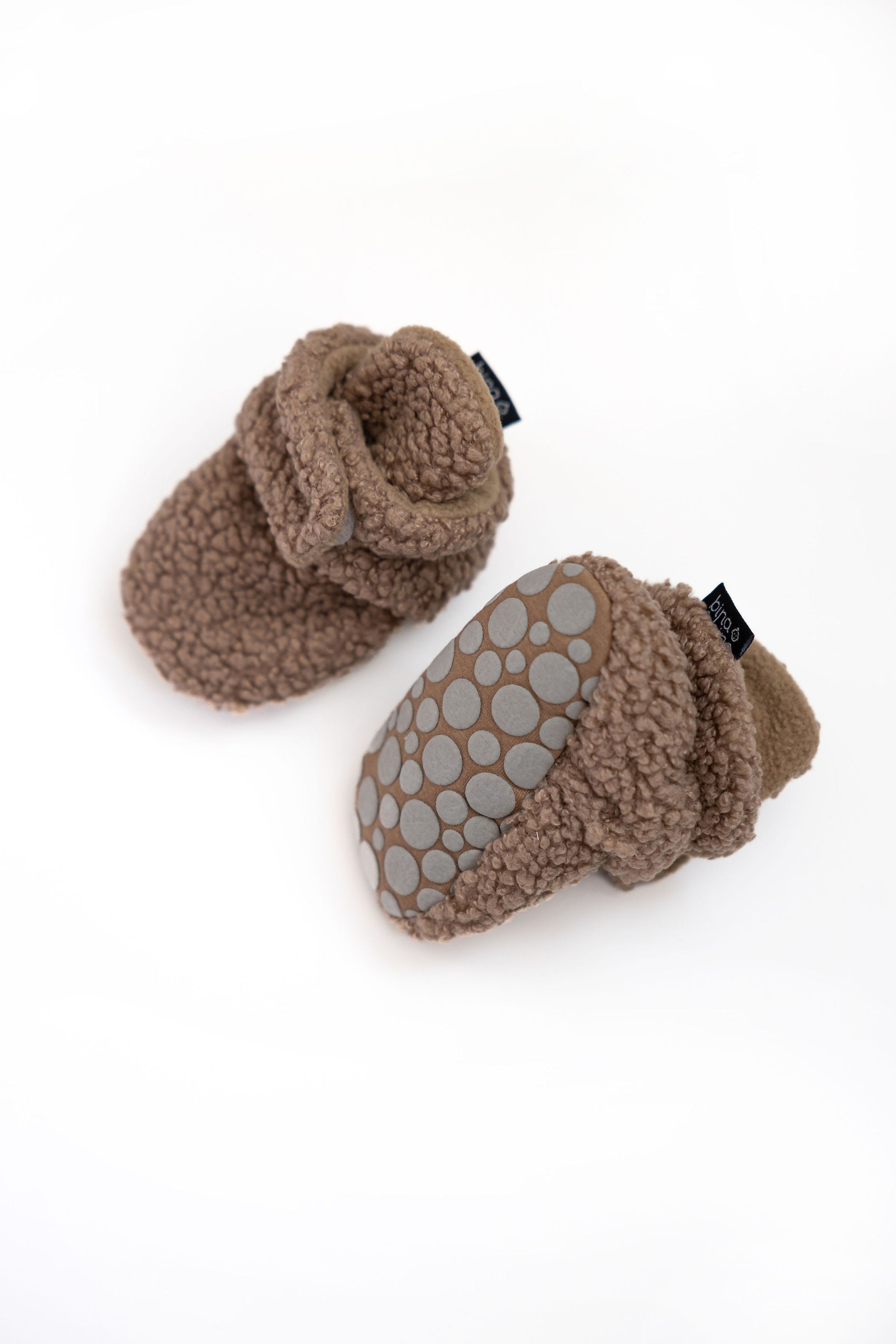 נעלי בית למניעת החלקה לתינוקות. עשויים מבד פליז רך ואיכותי, מחמם ונעים