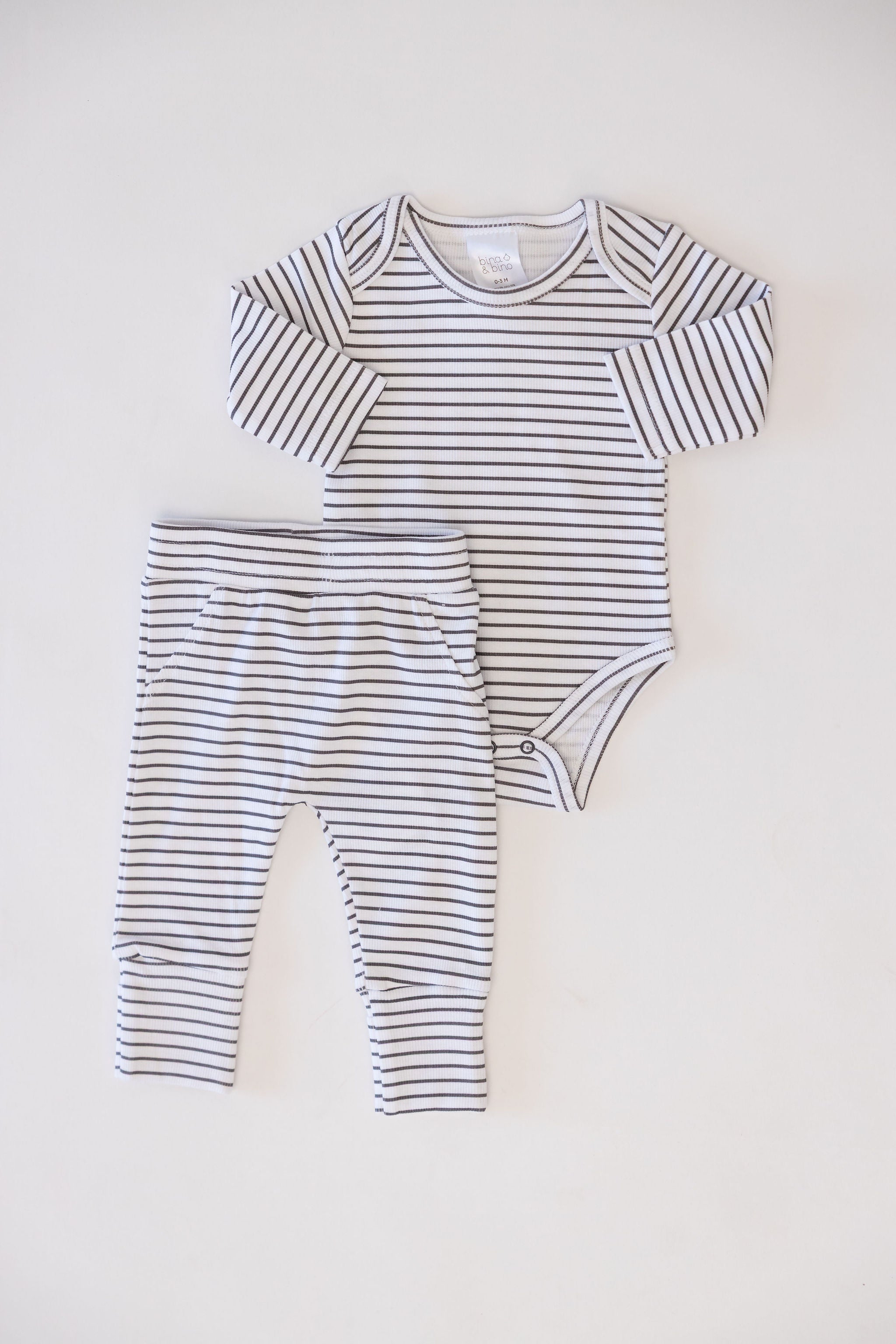 סט בגד גוף ומכנסיים ארוכים // CHARCOAL STRIPE