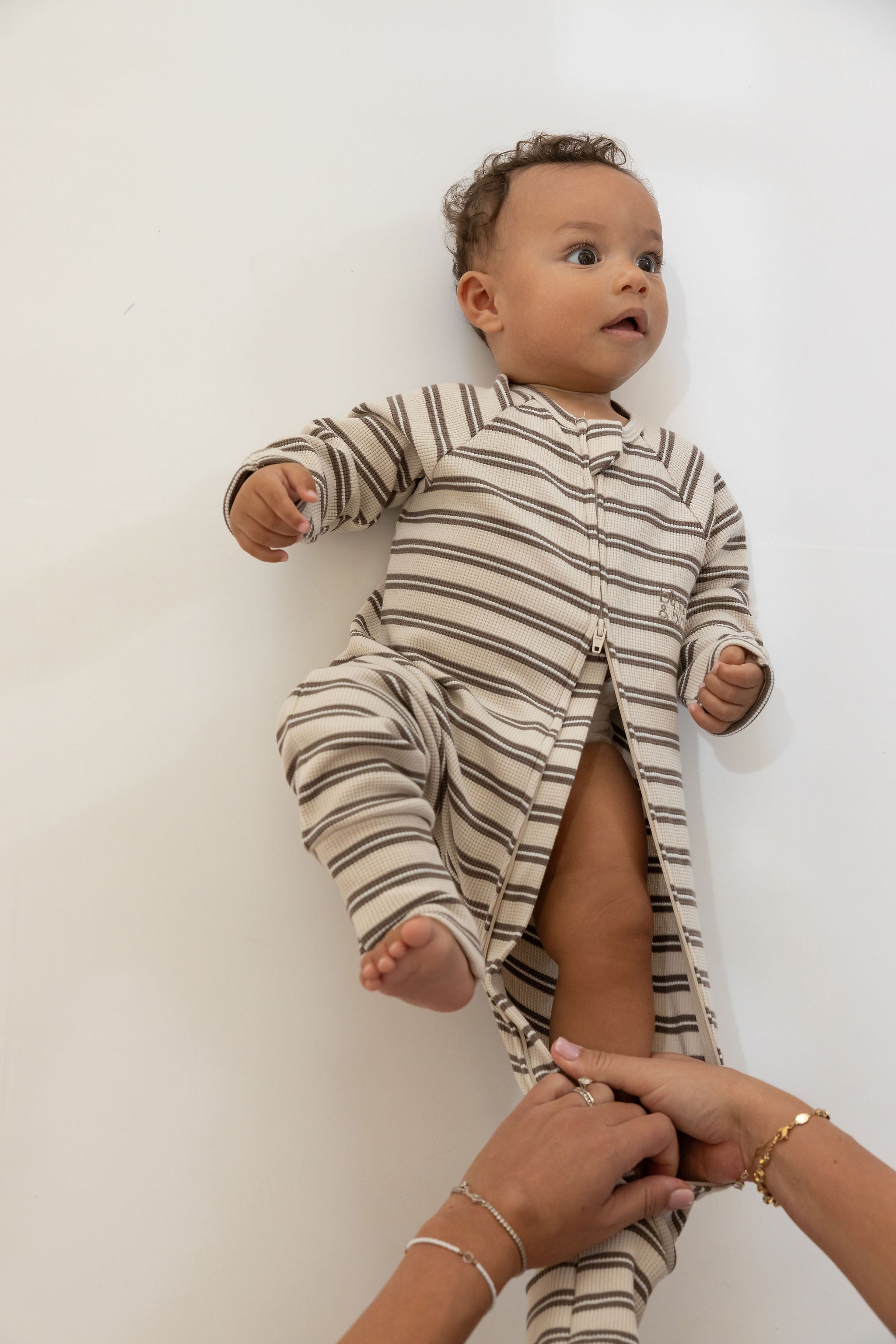 אוברול רוכסן דו כיווני מבד וופל // COCOA STRIPE