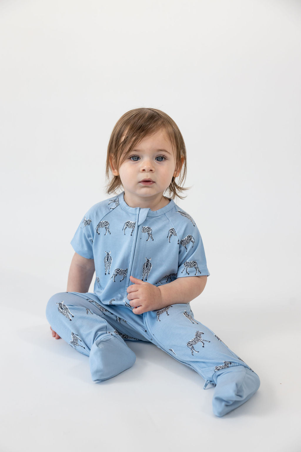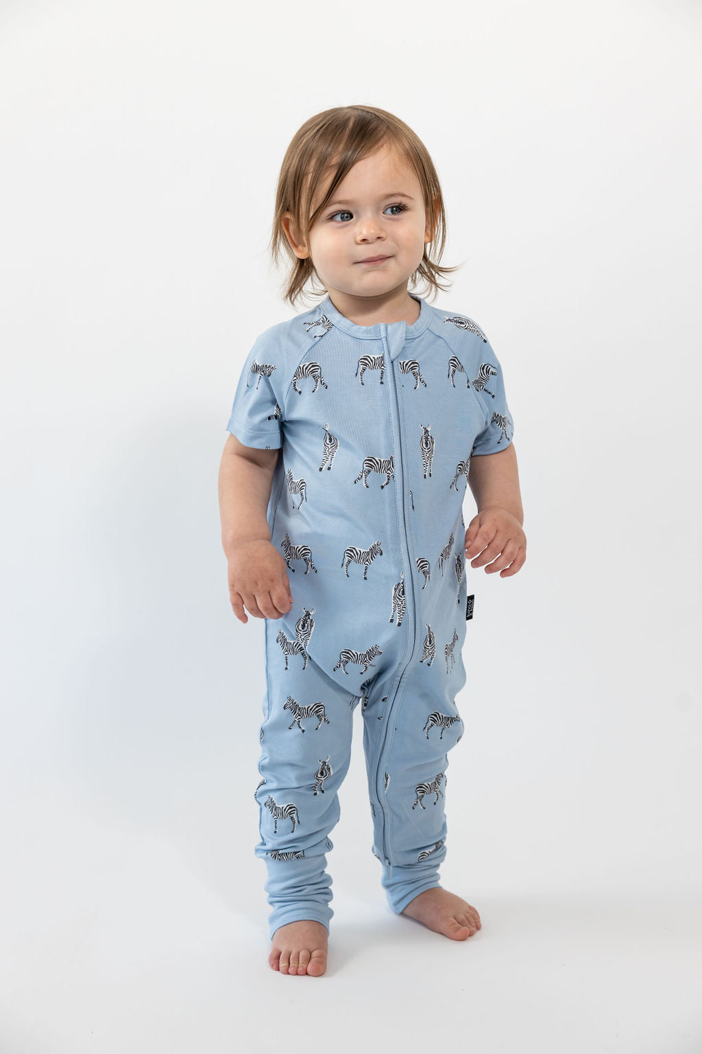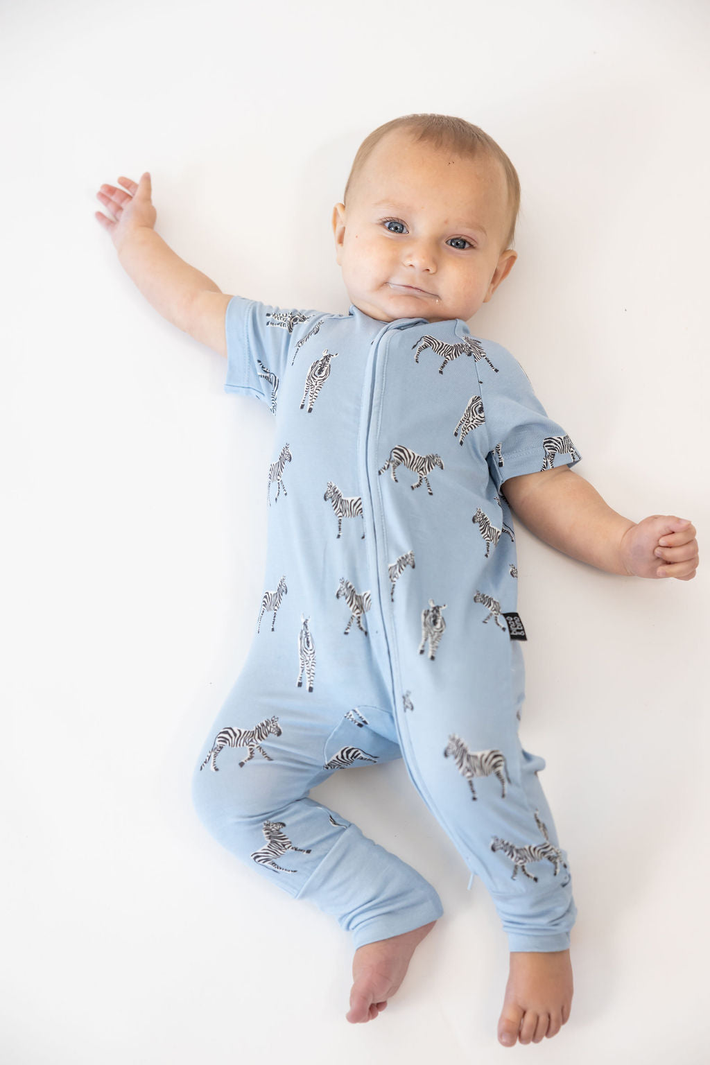 אוברול רוכסן דו כיווני עם שרוול קצר מבד במבוק // BLUE ZEBRA SHORT