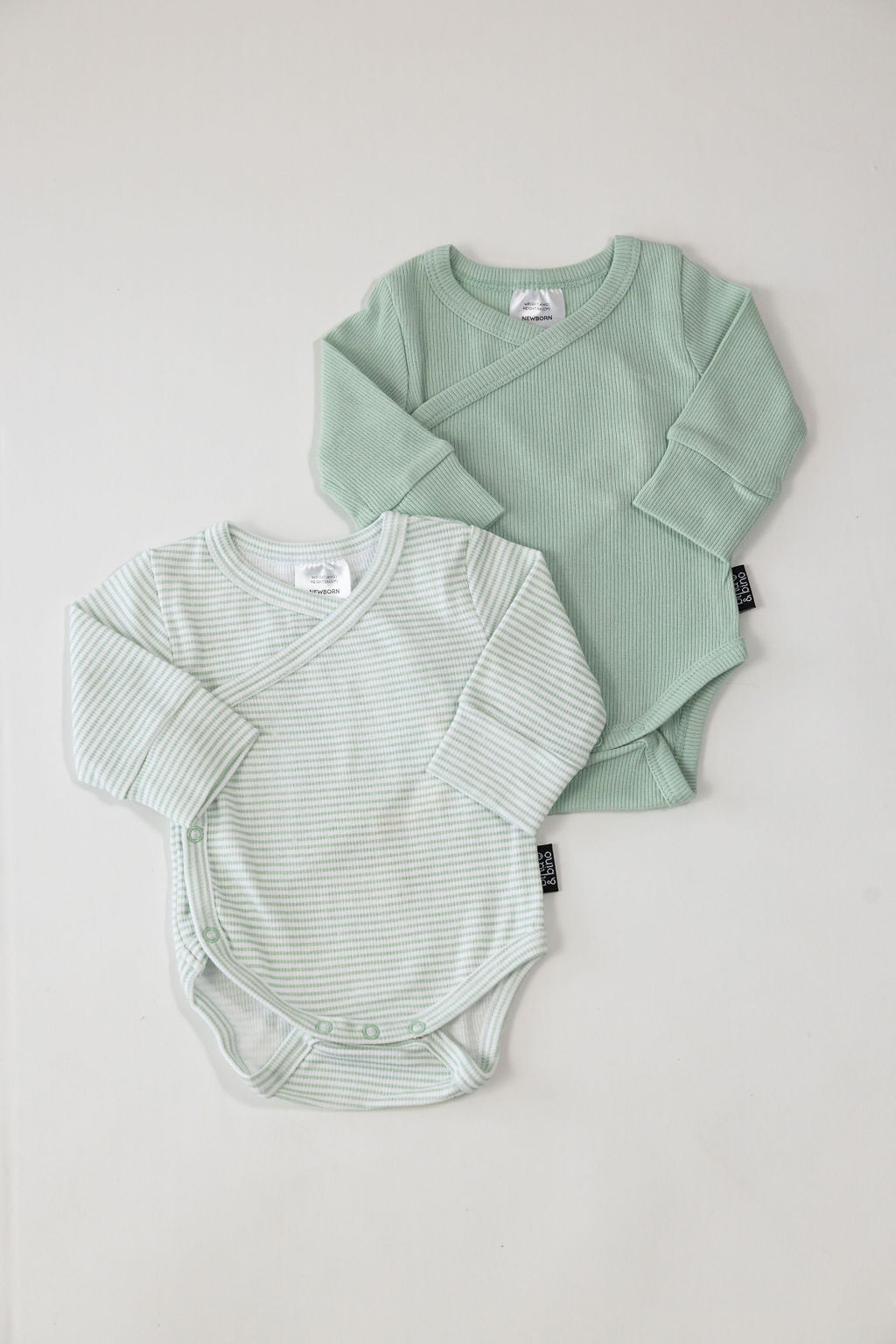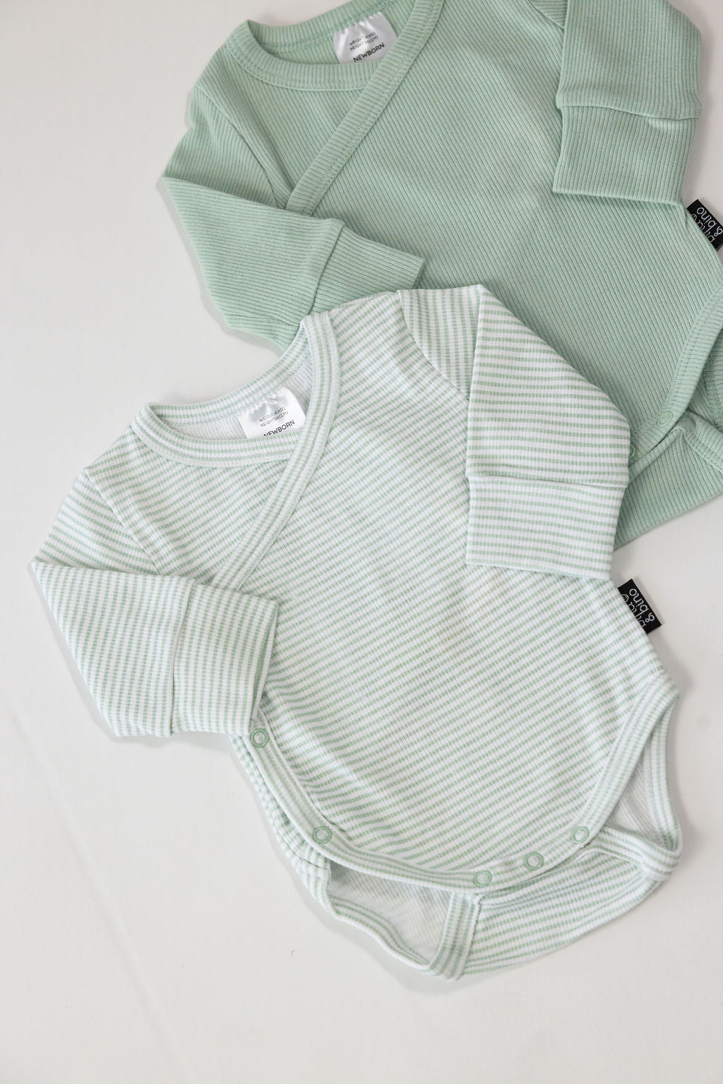 מארז 2 בגדי גוף מעטפת מבד ריב // MINT + MINT STRIPE